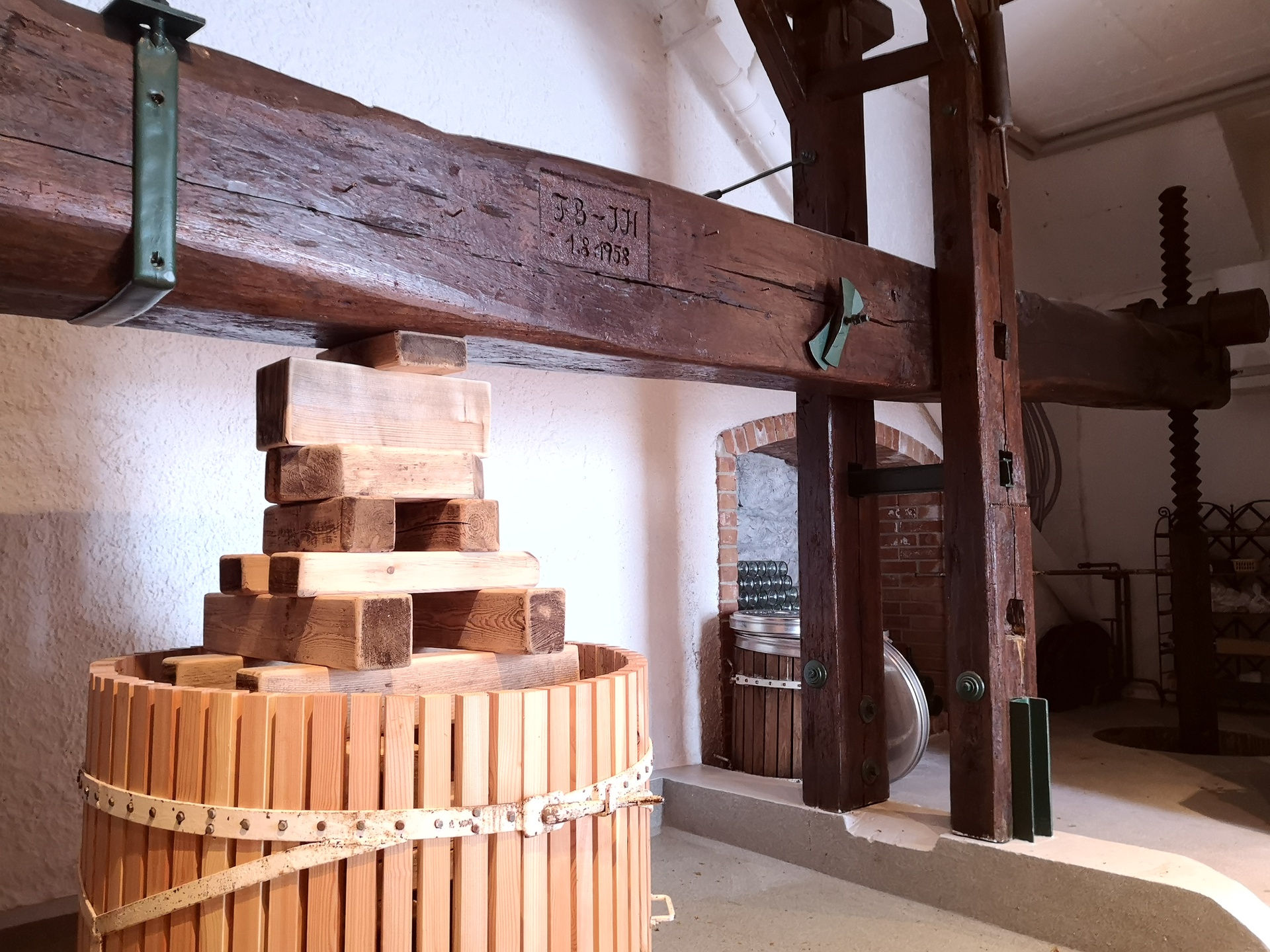 Gerne können der Weinkeller, die alte Holzpresse und die traditionellen Bearbeitungsmethoden besichtigt werden.